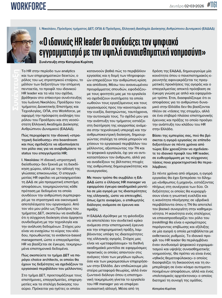 Συνέντευξη στο περιοδικό HR Professional με αφορμή την πρόσφατη εκδήλωση βράβευσης των HR Awards 2025.